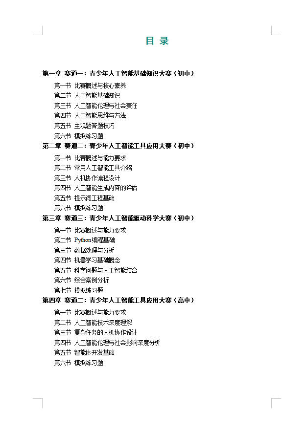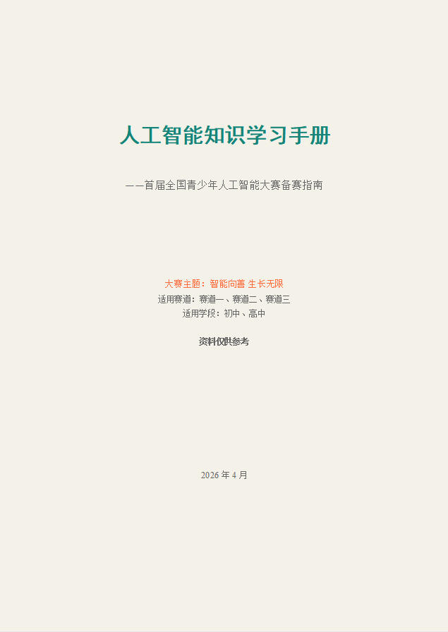 首届全国青少年人工智能大赛(初中组赛道一、赛道二、赛道三高中组赛道二)人工智能知识学习手册,赛前特训内部手册。