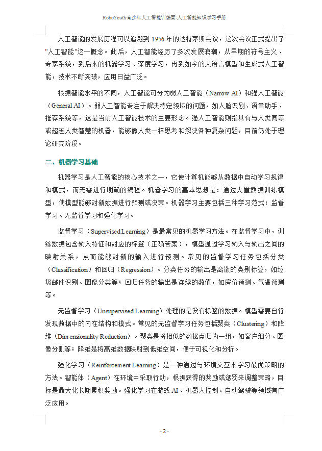 首届全国青少年人工智能大赛(初中组赛道一、赛道二、赛道三高中组赛道二)人工智能知识学习手册