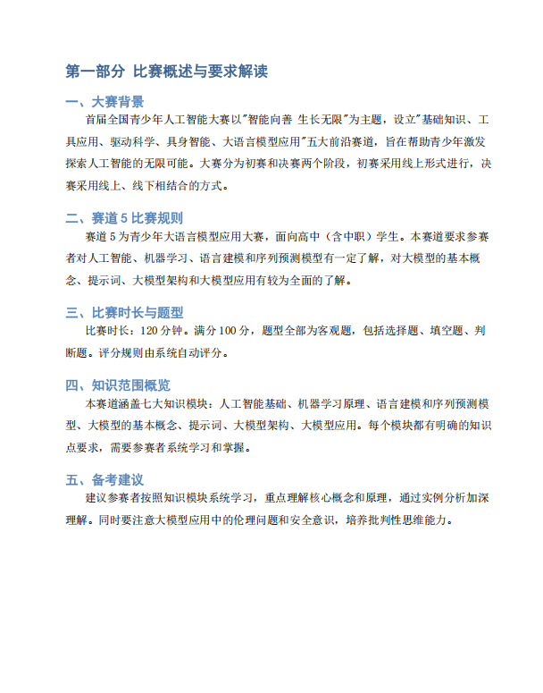 首届全国青少年人工智能大赛(高中组赛道五:青少年大语言模型应用大赛)人工智能知识学习手册(含5套模拟试卷)