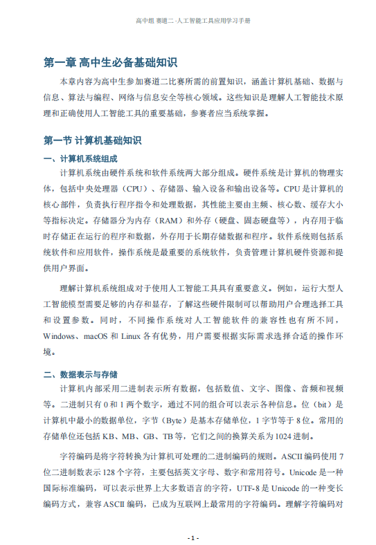首届全国青少年人工智能大赛・高中赛道二学习手册,系统覆盖高中生必备 AI 知识与工具应用能力。从计算机基础、数据算法、网络安全讲起,深入解析机器学习、深度学习、大语言模型、多模态 AI 与智能体技术;重点讲解文本、图像、音视频、代码等 AI 工具实操,配套提示词工程与人机协作方案设计;同时强化 AI 伦理、数据安全、算法公平与法律法规,附全真模拟题与术语表。内容贴合赛事考点,兼顾原理与实操,帮助青少年快速掌握 AI 工具用法、建立规范认知,是备赛与 AI 入门的权威实用指南。